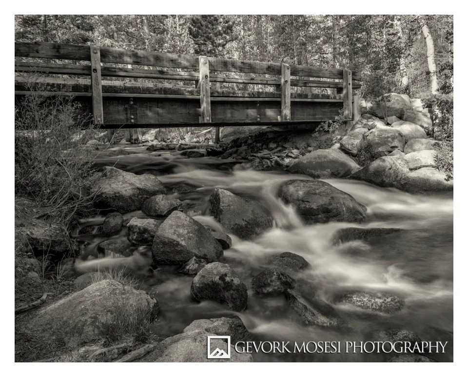 Rock Creek Campground Bridge, Sierras, Chamonix 45n-1 with Rodenstock 90mm, Tmax 100